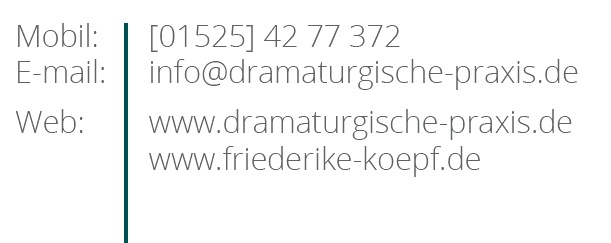 Idee- und Stoffentwicklung | Textproduktion | Regie | Dramaturgie | Dramaturgische Beratung in den Bereichen Theater, Kinderbuch, Hörfunk, Film und Konzeptionelle Kunst - HERZLICH WILLKOMMEN IN MEINER DRAMATURGISCHEN PRAXIS! Weitere Informationen finden Sie hier!